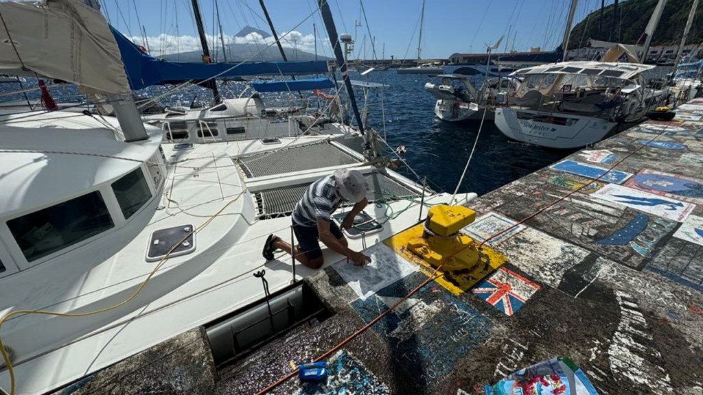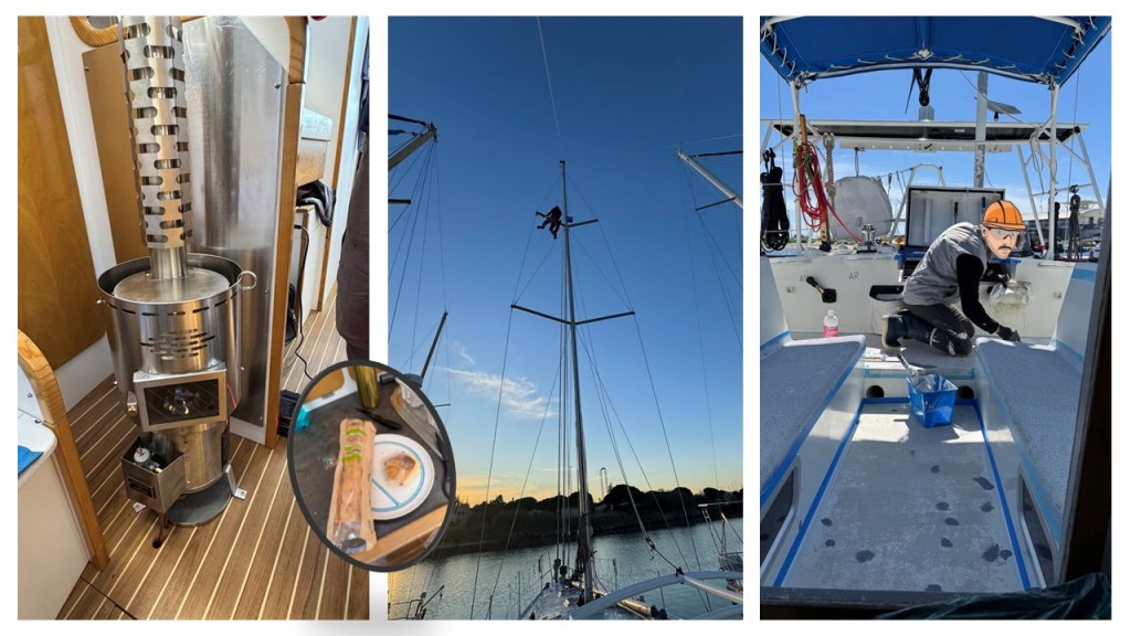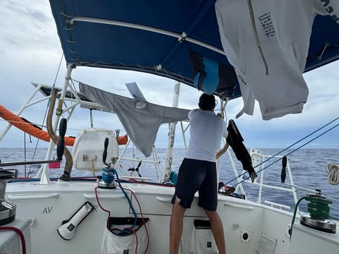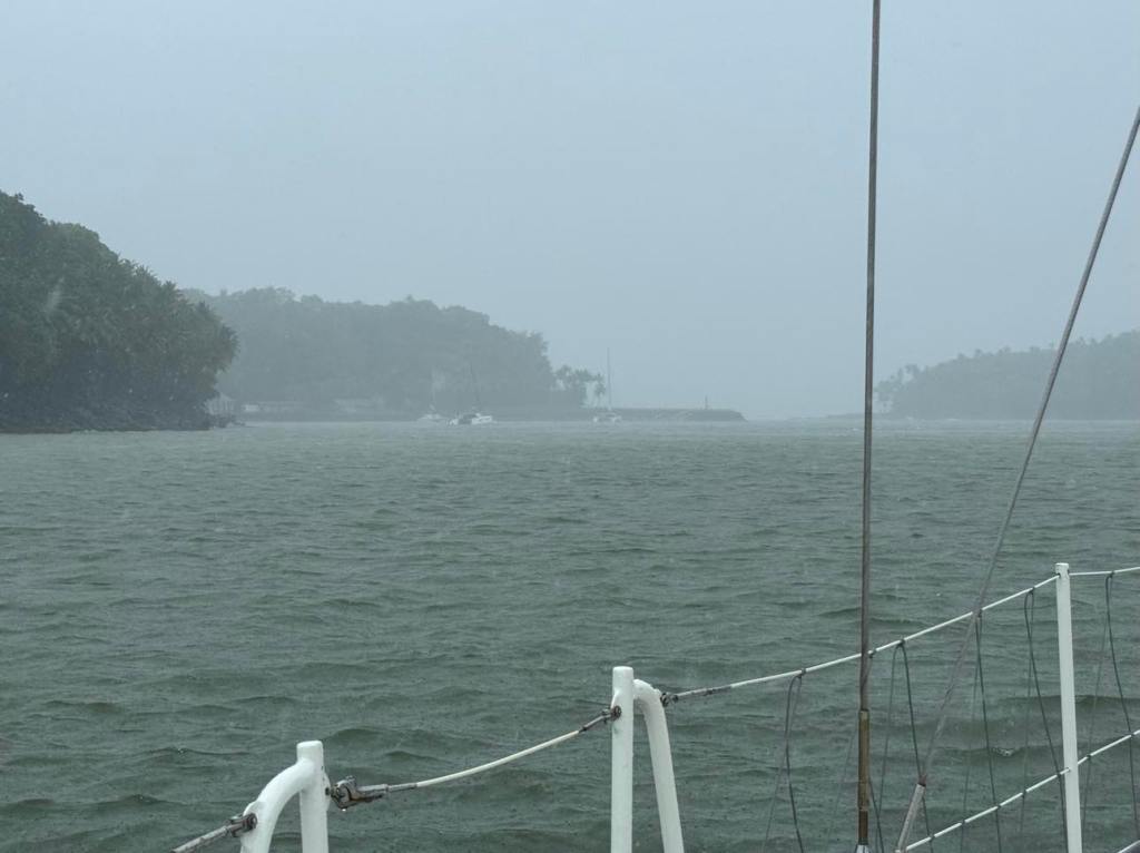 C’est la course pour tout faire, le plein d’eau, laver le bateau, trouver une laverie pour laver et sécher tout le linge qui ne sèche pas dans le bateau humide du temps qu’il fait, acheter à manger et se trimballer des sacs à porter, les fruits et les légumes ça pèse plus lourd que les chips, travailler pour ma part tandis que le capitaine trouve un coiffeur,
