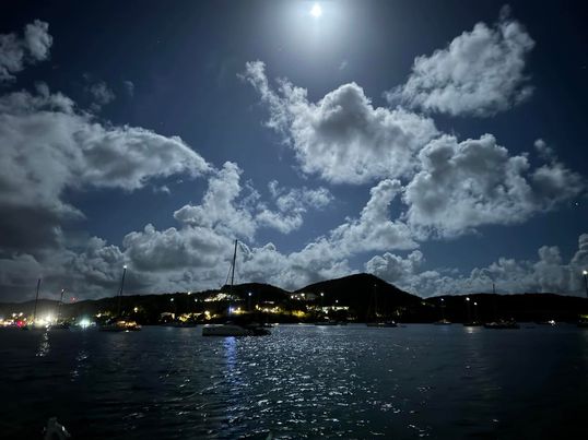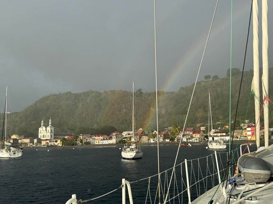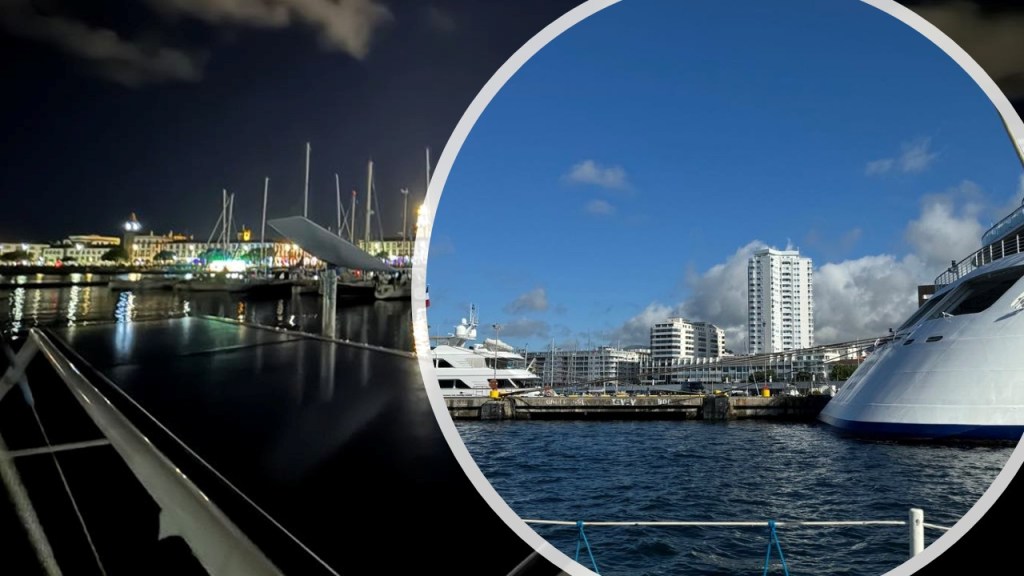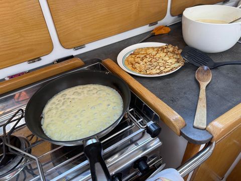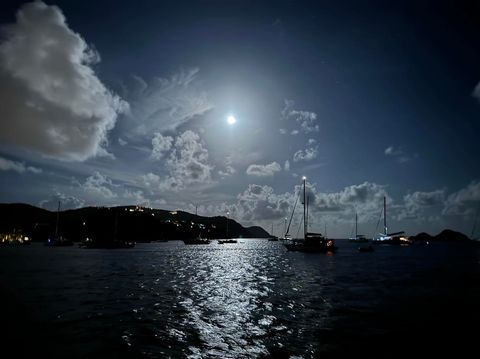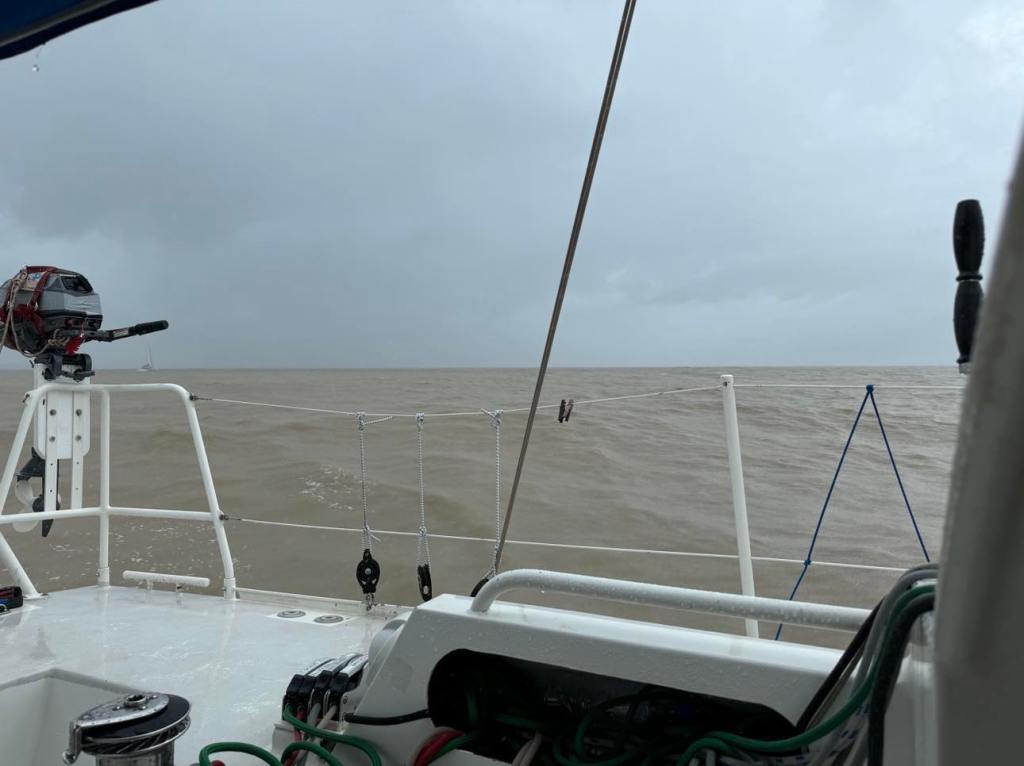 Nous rentrons fourbus et saoulés de vent, même abrités dans le port, la soirée est un peu rouleuse, on ne se plaint pas, ça a l’air pire pour le voilier mouillé derrière nous :