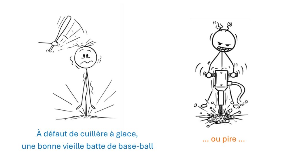Pour nous remettre, on se dit qu’on va faire une flambée, histoire de se réchauffer les os, mais va savoir pourquoi, le poêle débloque et nous enfume, on doit l’éteindre, la soirée est fraîche et c’est rien de le dire, il y a des jours sans.