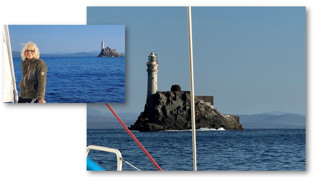 Sans s’attarder une fois de plus, dès le lendemain dimanche 1er juin, nous hissons les voiles pour aller à Dingle, c’est juste en face, 15 NM, easy, une fois de plus on voit que ce n’est pas la longueur du trajet qui en fait la qualité (Subst fem : caractéristique de nature, bonne ou mauvaise, d’une chose ou d’une personne), nous sortons près du phare et ça brasse comme on dit :