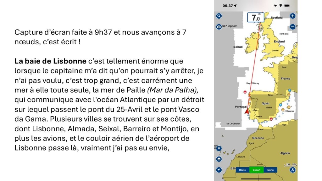 Le capitaine écrira dans son journal de bord : Magnifique mais agité. Grosse mer et houle croisée. Fatal pour mon estomac.