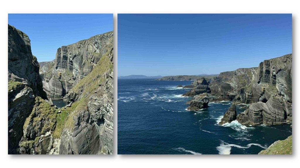 Ça donne une bonne idée des nav’ dans le coin. On continue notre navigation le long des côtes du comté de Kerry, aussi appelé royaume de Kerry du temps où le chef O’ Connor était Ciar (prononcé keer) dont les descendants furent connus sous le nom de Ciar-raigh (prononcé keer-ree), ce qui signifie approximativement le peuple de Ciar ou le royaume de Ciar, voilà voilà, nous nous immergeons progressivement dans l’histoire de ce pays et les étrangetés de ses prononciations.