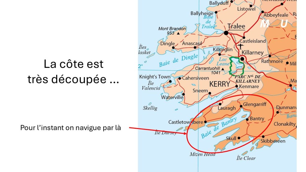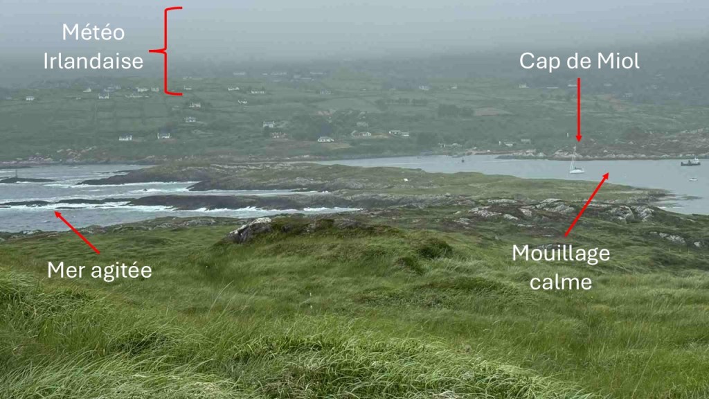 Un copain d’enfance du capitaine qui a visité un jour la côte Ouest de l’Irlande lui a dit qu’il n’avait rien vu que du brouillard, au bout de quelques dizaines de kilomètres, on se demande avec effroi si ce n’est pas une constante …