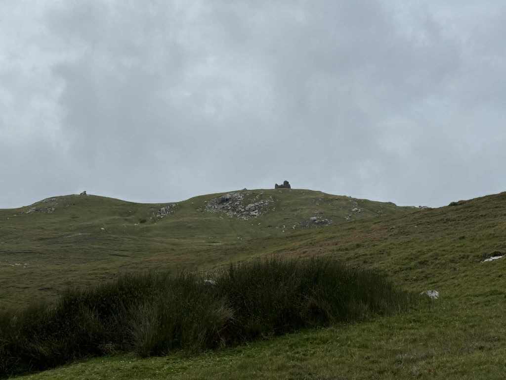 Cette ruine du 19ème n’est pas perchée si haut que ça, mais il n’y a pas de chemin à proprement parlé pour y monter, on s’enfonce dans le sol détrempé et on glisse, tantôt sur l’herbe, tantôt sur des crottes,