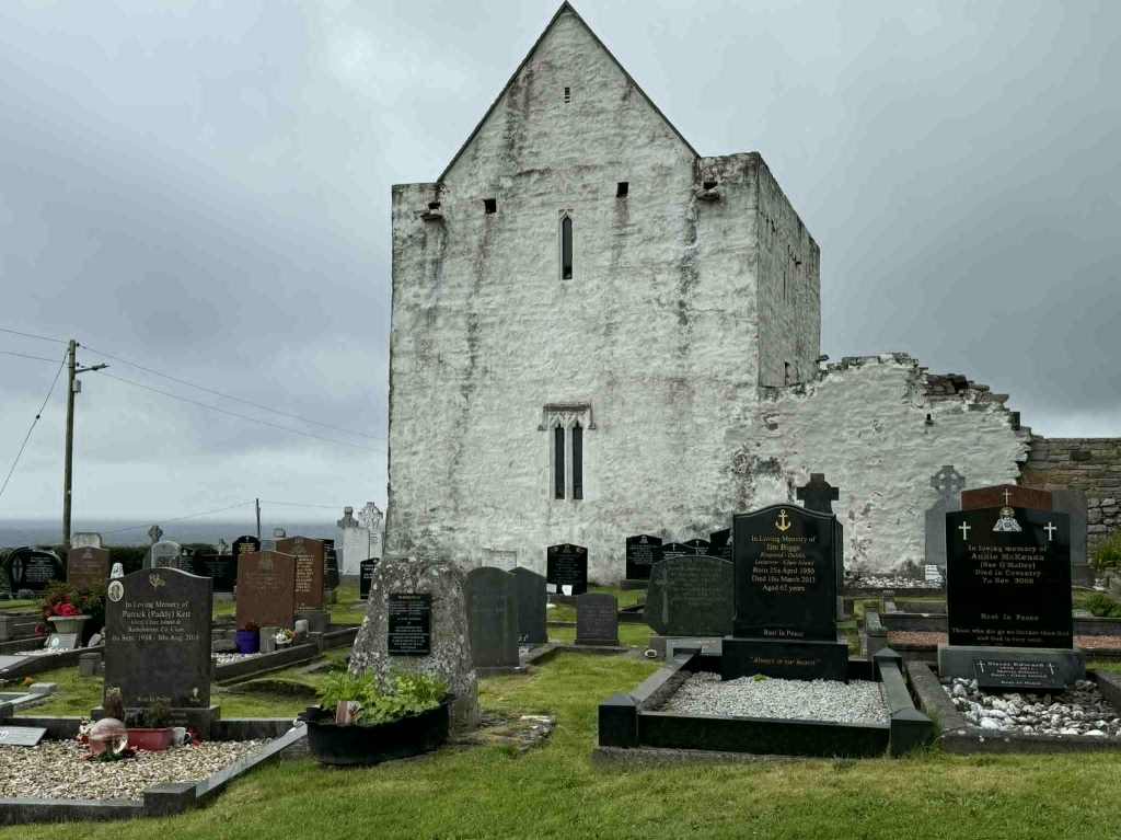 Rassasiés d’un sandviche au jambon et au cheddar locaux, nous passons par l’abbaye cistercienne de Sainte Brigitte dans le hameau de Kill, incontournable, c’est ma grande sœur qui m’a dit de ne pas manquer d’aller voir la tombe de la reine pirate d’Irlande Gráinne O’Malley, bon, j’ai cherché dans tout le cimetière, je ne l’ai pas trouvée dans tous ces O’Malley enterrés là, mais c’est normal, le clan gaélique O’Malley était la famille, d’une part régnante du Connaught, et de l’autre réputée pour ses talents de navigateurs, il fallait bien les mettre quelque part.