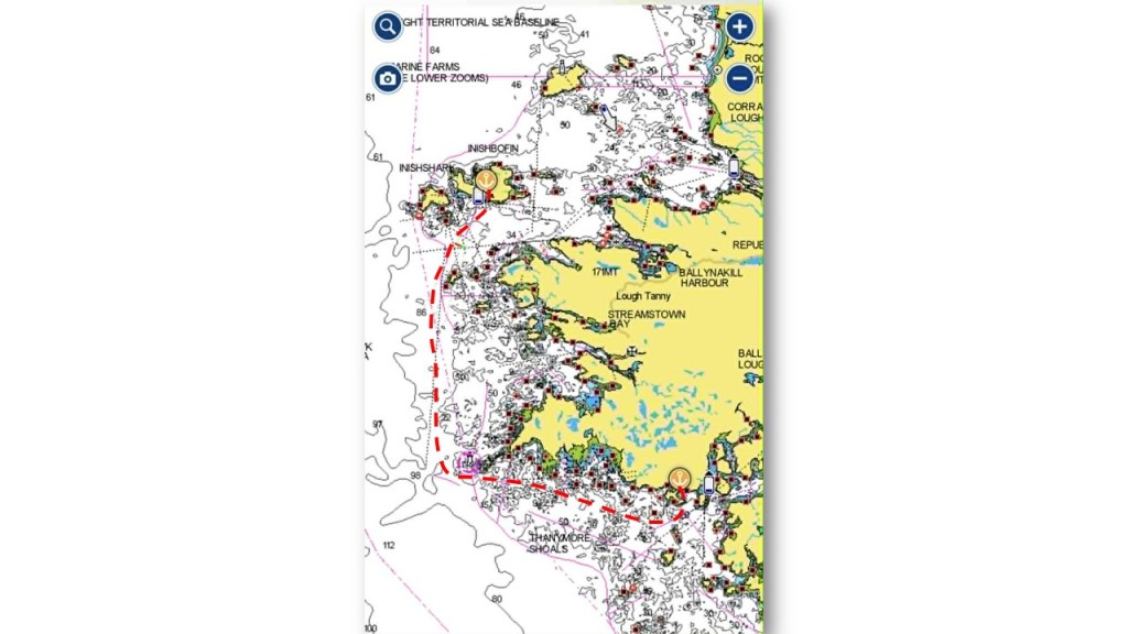 Le vent ça va et ça vient, aussi nous pouvons partir dès le jour suivant pour un mouillage sur l’île d’Inish Kea, il y a beaucoup de fermes aquacoles dans le coin, ce sont des élevages de saumons, le site de Clare Island est la première ferme de saumon dans le monde à avoir réalisé la certification biologique en 1995.