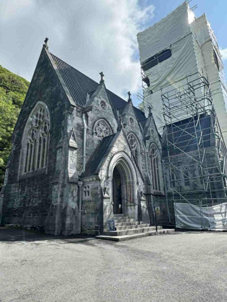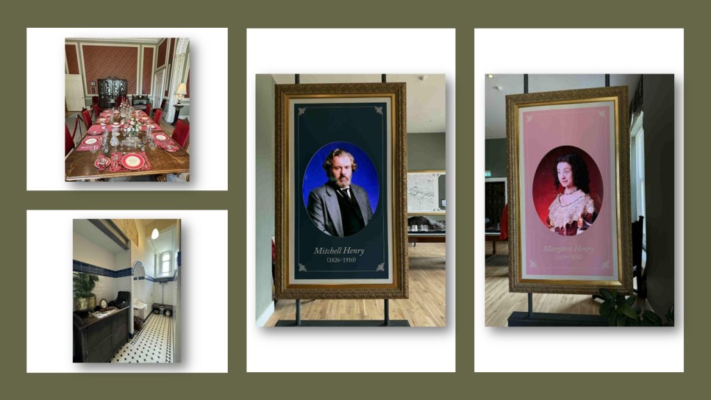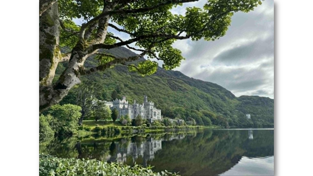 L’histoire de cette abbaye est l’histoire d’amour de Margaret et de Henry qui ont passé leur lune de miel dans le Connemara en 1852, comme l’endroit plaît à Margaret, Henry qui ne regarde pas à la dépense fait construire ce magnifique château (ou ce château démesuré, c’est selon) doté de 33 chambres alors qu’ils ne font que 9 enfants (la pauvre) le temps de construire tout ça, puis Margaret contracte une mauvaise fièvre en Egypte et décède en 1874, Henry fait alors construire une église néogothique à côté du château en hommage à sa belle, c’est le Taj Mahal de l’Irlande. Pour couronner le tout, sa fille Géraldine se noie dans le lac du château en 1892 (ou se tue dans un accident de calèche, on a les deux versions) (ou alors elle est tombée depuis la calèche dans le lac), il vend alors le château pour oublier ses peines autant que pour combler ses dettes et décède en 1910, depuis il repose dans le mausolée à côté de Margaret.