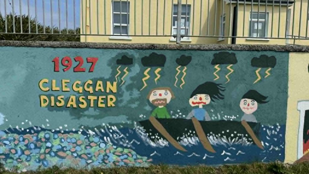 Voilà : le 27 octobre 1927, il faisait grand beau, les pêcheurs locaux s’en sont tous allés à la pêche au maquereau dans l’océan près de la baie de Cleggan, mais une tempête aussi violente que soudaine a fait naufrager les embarcations, il y a eu 45 morts, une véritable catastrophe, des villages entiers se sont retrouvés sans hommes et sans ressources puisque la pêche était la seule activité économique de ces îles, certaines familles ont dû partir, au total on a dénombré 16 pêcheurs du village de Rossadilisk, qui fut totalement abandonné, ainsi que 10 d’Inishbofin, 10 de Lacken Bay et 9 d’Inishkea dans le comté de Mayo, cela a été le pire accident de ce genre de tout le 20ème siècle. A l’époque on ne disposait pas des outils météo d’aujourd’hui, mais même, on ne peut jamais tout prévoir … terrible…