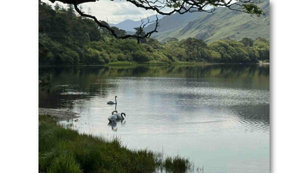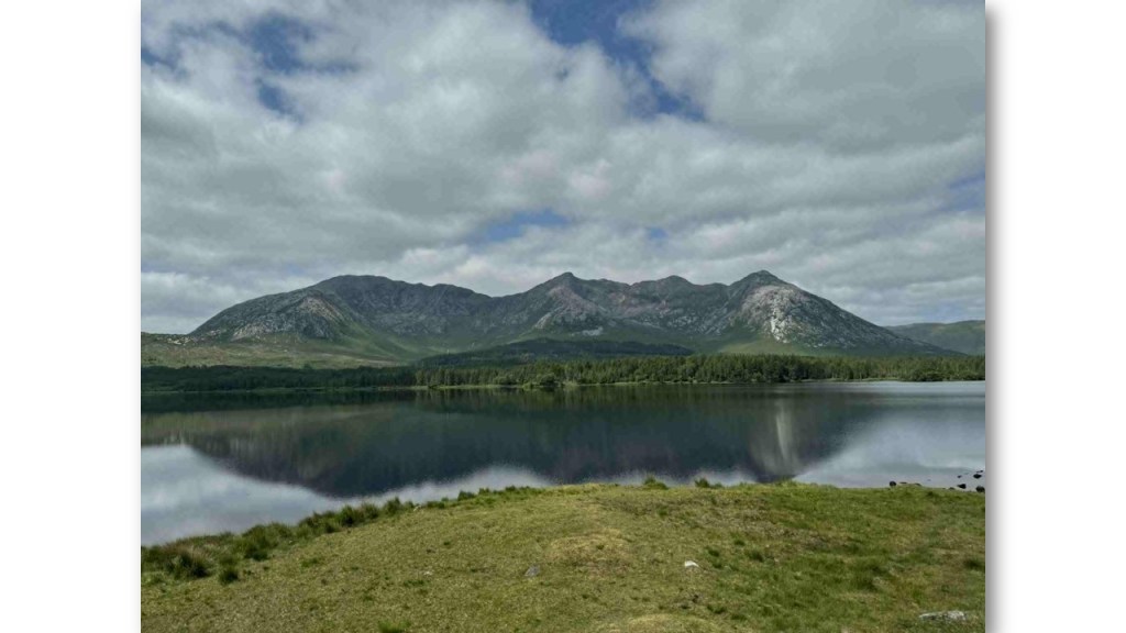 On s’en retourne sur Galway pour retrouver le bateau, le coin ne manque pas de lacs, je vous montre encore celui-ci pour le plaisir, avec en fond l’une des Twelves Bens, soit l’une des douze montagnes sauvages du Connemara :