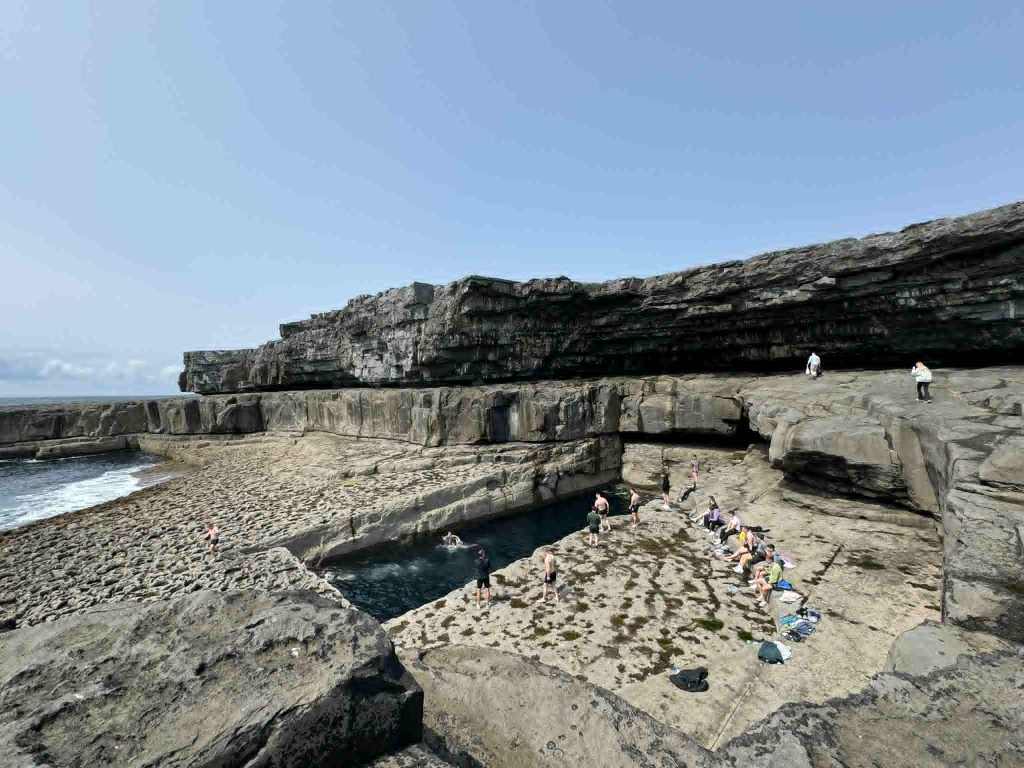 On a aussi suivi un troupeau de vélocipédistes hardis qui nous a amenés jusqu’à une piscine naturelle à peine croyable, le Worm Hole, ou Trou de Ver, c’est quantique, j’aurais parié ma chemise qu’elle a été taillée par la main de l’homme, il n’en est rien, il s’agit d’une piscine taillée naturellement par la mer dans du calcaire et du granit, j’ai du mal à le croire, d’autant que les scientifiques eux-mêmes n’expliquent pas comment la mer a pu creuser un rectangle aussi parfait, alors si ça se trouve ça fait des millénaires que des gars se sont fait leur petit spa dans le coin ? Il y a beau être écrit partout qu’il vaut mieux ne pas s’y baigner, la jeunesse ne s’en prive pas, il y a même des concours de plongeons qui y sont organisés, comme le Red Bull Cliff Diving, il vaut mieux être habitué car il faut plonger d’une hauteur de 27 mètres.