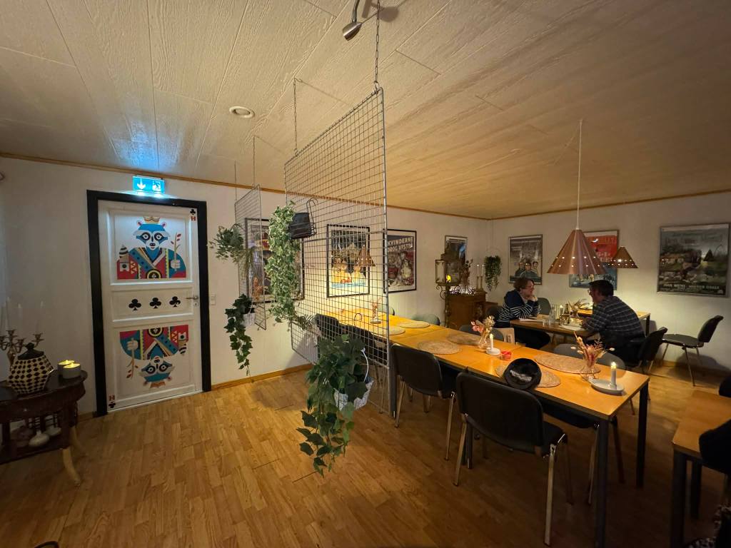 On nous fait comprendre dans une langue inconnue (les langues officielles sont le féroïen et le danois mais va les distinguer) qu’on a de la chance parce qu’on n’a pas réservé, et on nous installe près du mur à coté du couple présent,