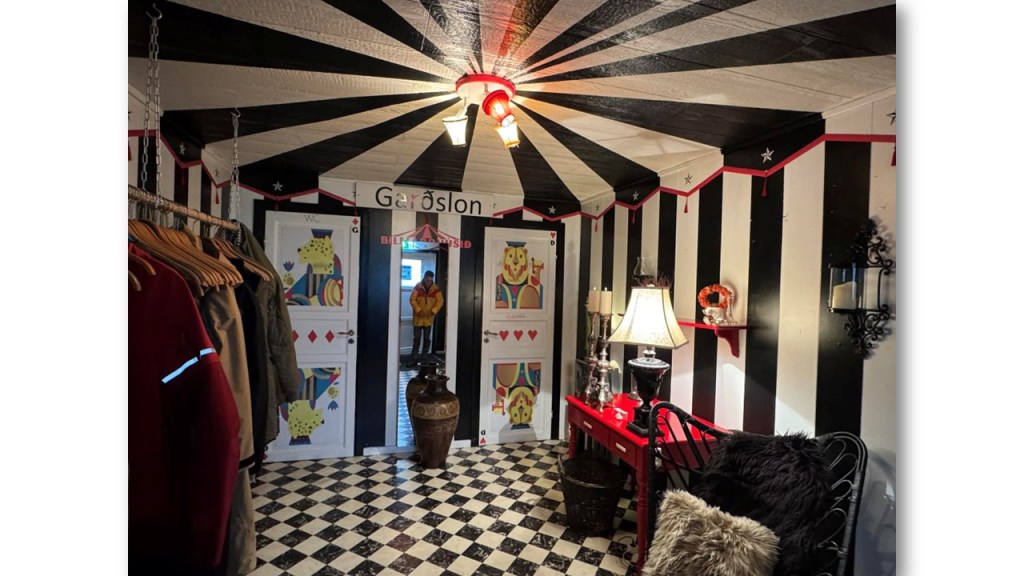 On finit par trouver l’entrée, une porte dérobée sur le côté, quand on la pousse une nuée d’enfants s’envole comme un essaim d’abeilles et je me dis que les proprios doivent être fans de Lewis Caroll…