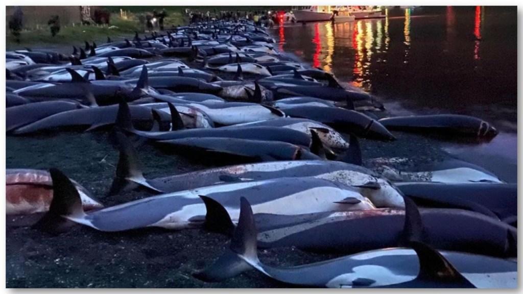 Le 12 septembre 2021, 1428 dauphins ont été tués lors de la sinistre chasse traditionnelle du grind : le pire massacre connu dans l’archipel, la mer était totalement rouge de sang.