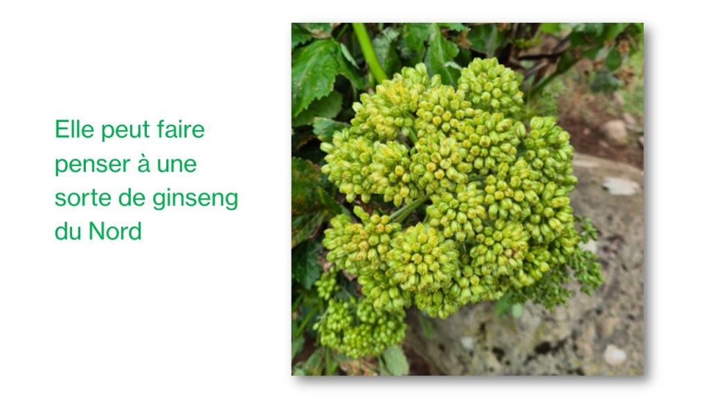 Autre grande compagne des latitudes nordiques : Angelica archangelica, l’angélique, que l’on retrouve en Islande, en Norvège et dans la zone féroïenne. Les peuples du Nord l’utilisaient comme tonique digestif, plante de force et de protection : elle réchauffe, fait circuler, aide à digérer les aliments lourds et gras typiques des climats froids.