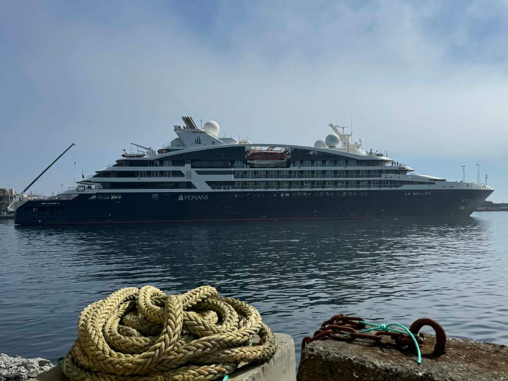En retournant à la marina, on voit passer le Ponant, dans les eaux d’ici une croisière coûte au moins 5000 € par tête de pipe sur ce superbe bateau, champagne inclus j’espère.