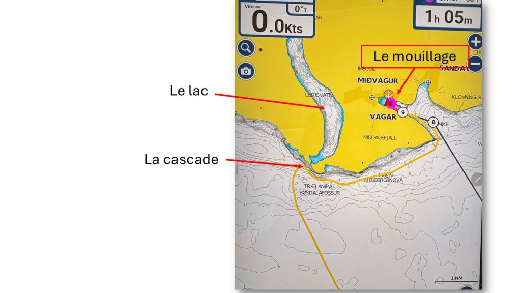 on met plus d’une heure et demie pour faire 4.5 NM jusqu’à Miðvágur, voiles hautes et moteur à donf en prime.