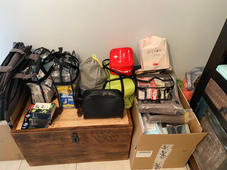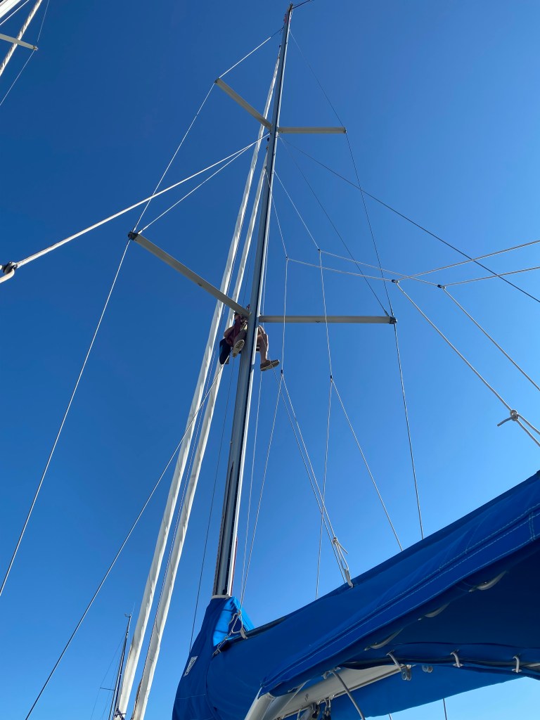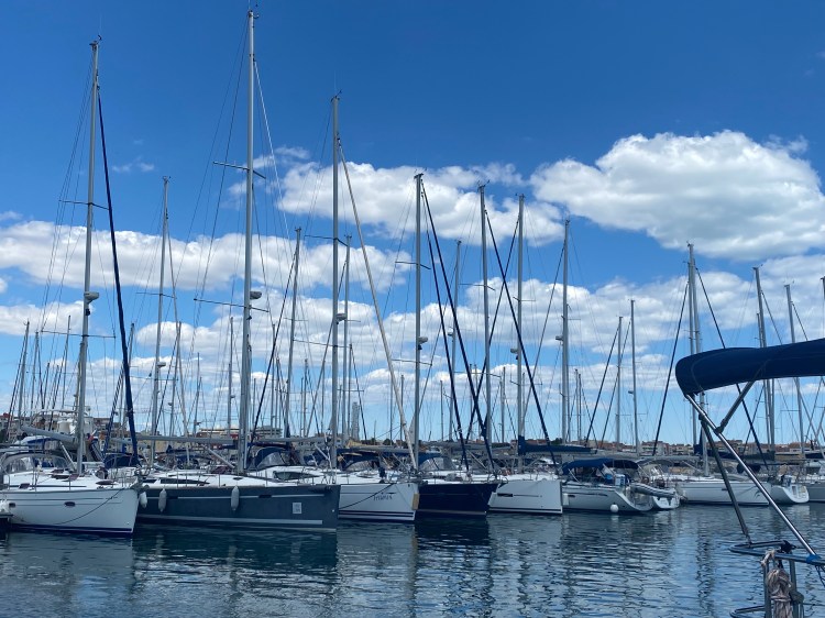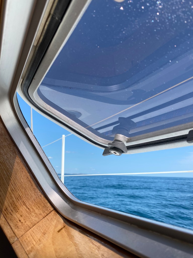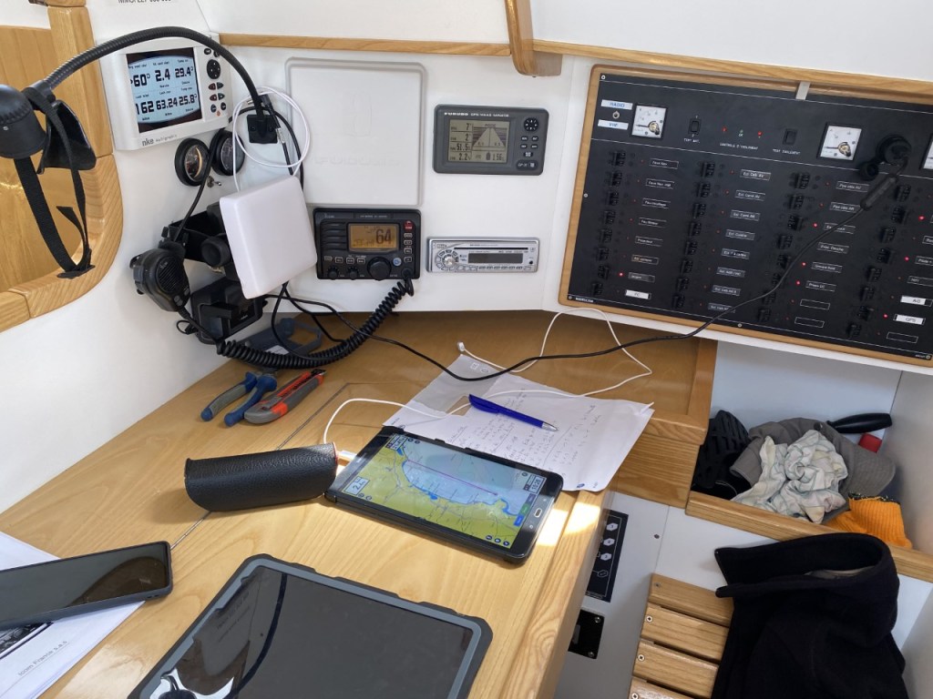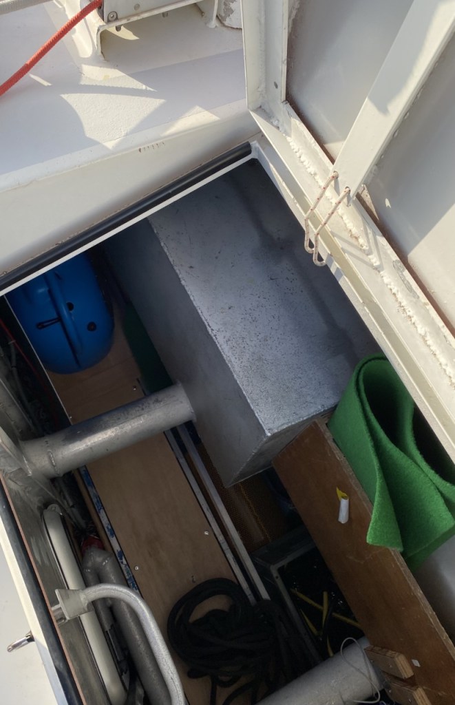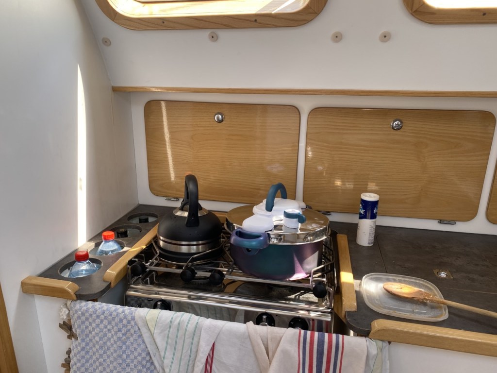 ensuite on a tout rangé dans le bateau et j’ai fait des plans en lettrant les coffres au-dessus du plancher et en-dessous du plancher, pour s’y retrouver, sinon on devrait retourner tout le bateau pour trouver une boîte de haricots verts … malgré cette habile manœuvre, j’ai déjà perdu la trousse à couture 🙄