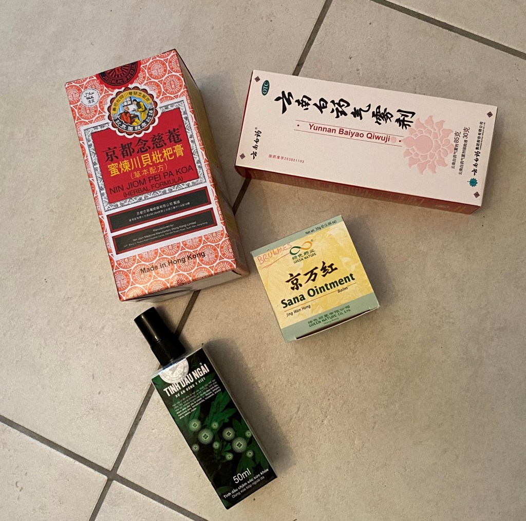 - Tinh Dau Ngai : formule « secrète » à base de plantes – développée à l’origine pour arrêter le saignement des blessures par balle, depuis, il a été découvert qu’elle est efficace dans le traitement de toute sorte de douleurs. Pour traumatisme sévère : entorses, élongations, claquages ou hématomes