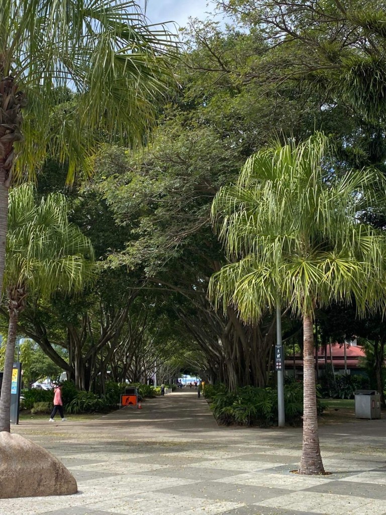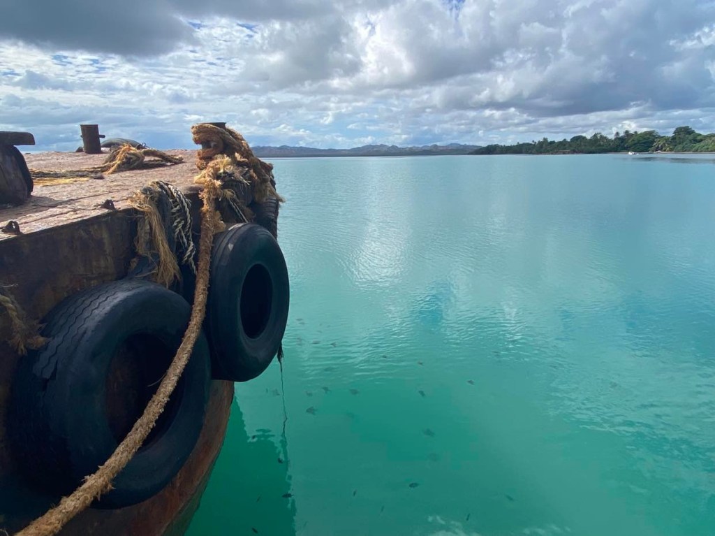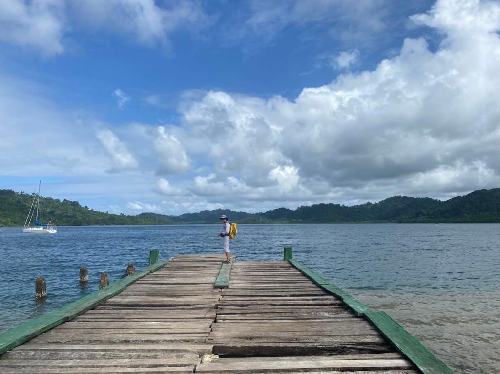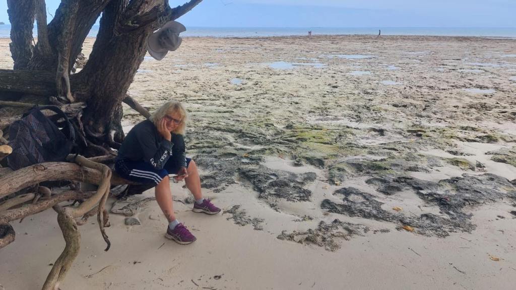 Comme à chaque arrivée après plusieurs jours de navigation, il faut refaire le plein d’eau, mais ici point de marina pour faire les pleins depuis un ponton comme des nantis, on doit faire des allers retours en annexe avec nos bidons et nos bouteilles vides pour les remplir à un robinet public, et puis ensuite plein de gasoil, nous voilà sur la route avec chacun 4 bidons de gasoil de 20 litres à remplir, au bout de 3 minutes une voiture s’arrête pour nous emmener, même pas besoin de faire du stop, une fois nos bidons remplis à la station je demande à un gars qui fait le plein de son bateau à moteur (sur une remorque) s’il retourne près du ponton et s’il pourra nous emmener nous et nos bidons, oui bien sûr avec plaisir qu’il peut, il vit sur cette île depuis 16 ans et travaille dans l’écologie, est marié à la principale de l’école et a 2 enfants de 10 et 8 ans, élever des enfants ici est génial parce que c’est hyper sécuritaire et cool, 2000 habitants et tout le monde se connaît, pas de vandalisme ni de serial killer, je lui demande si ça prépare les enfants à vivre dans le monde normal, il sourit et me dit qu’il ne le croit pas, mais est-ce un mal … ça prend son temps, la journée y passe et le lendemain on cherche une laundry, à la capitainerie ils ont dit au capitaine qu’il n’y en a pas, moi j’ai demandé à une vendeuse du supermarché chinois qui parle un anglais aussi mauvais que le mien et ne comprend pas plus mon accent que je ne comprends le sien, mais mon oreille a saisi qu’il y a peut-être quelque chose en face d’un lodge dont le nom termine par tree, en regardant sur la carte je vois le Mango Tree Lodge, alors nous voilà partis avec nos sacs de linge dans un caddie que j’ai emprunté au supermarché pour marcher une bonne demi-heure sous un soleil de plomb en poussant le caddie comme Zézète épouse X, arrivés au fameux lodge, aucune laundry en vue mais une dame qui s’affaire avec un plumeau sur un balcon, je l’interpelle et lui demande s’ils font laundry, qu’on vient du bateau et qu’on aurait besoin de laver notre linge, elle ne comprend pas ce que je lui raconte mais le capitaine ne dit que 2 mots washing machine et tout s’éclaire, elle m’explique alors que sa boss n’est pas là et nous fait signe de la suivre dans une buanderie pour utiliser une machine mais c’est un secret, elle vient des Philippines et ira en Europe avec son mari l’an prochain, je lui dis que si elle veut bien manger il faut aller en Italie et en France, on peut laver et sécher notre linge, je lui demande combien on lui doit mais elle ne veut surtout pas, c’est un service qu’ils proposent aux clients du lodge, nous on n’est pas clients mais on a une bonne tête.