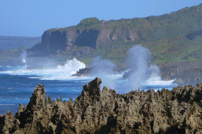 Maeva, le bateau de Jonathan et Cécile que nous avions vu à Nouméa puis à Darwin arrive, ça fait plaisir, nous avons une vie sociale pendant 2 jours à s’inviter les uns les autres à manger sur un bateau ou l’autre et à boire de la bière et du vin 🍷 et on ne dira jamais assez à quel point ça fait du bien, on passe un vrai bon moment, on leur dit qu’on voulait louer une voiture pour visiter l’île mais il n’y a plus de voiture dispo, ce qui est étonnant vu la masse de touristes qu’il n’y a pas, je ne sais pas comment Jonathan se débrouille mais une nana de l’office de tourisme lui prête carrément la sienne et nous embarquons tous les 4 à bord d’un vieux pickup rouillé, au moins on n’aura pas peur de l’abîmer, et nous partons à la découverte de cette île surtout connue pour ses crabes rouges, et comme la migration des crabes rouges commence, il y a déjà pas mal de routes fermées, on se met en quête d’en voir, on en verra ! mais si peu qu’à mon avis il ne s’agit que de quelques pauvres hères égarés …