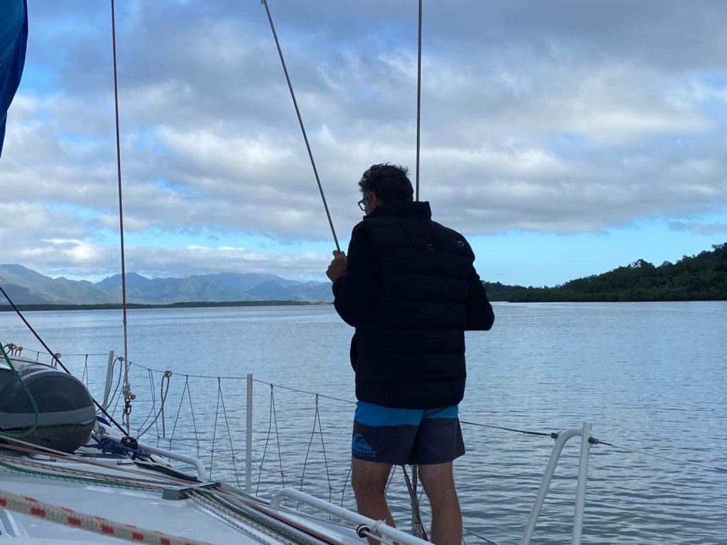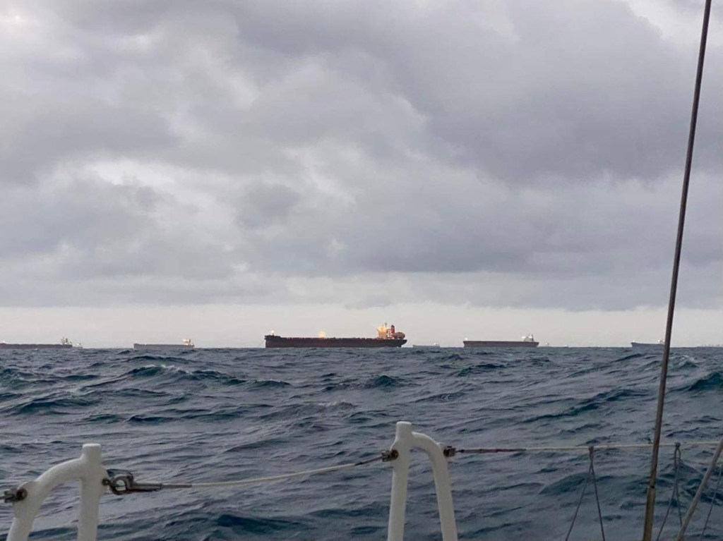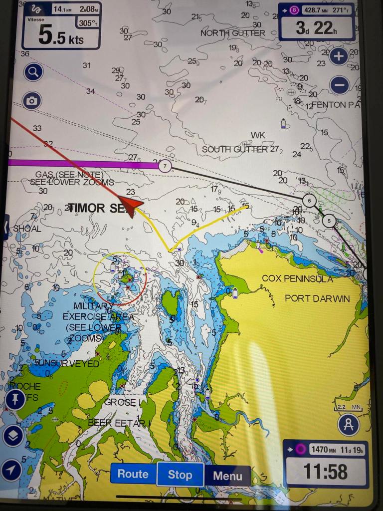 Au petit matin on a croisé un bateau militaire qui n’était pas sur l’AIS, comme les border forces australiennes nous ont demandé de les appeler si on note quelque chose de louche, je dis