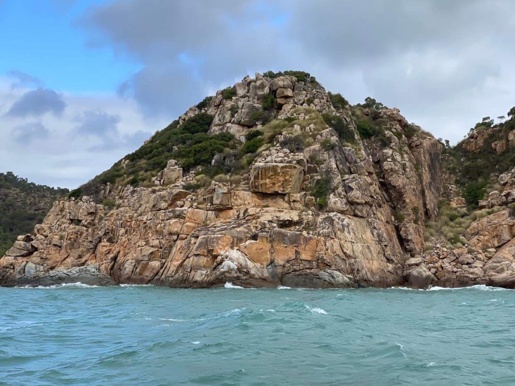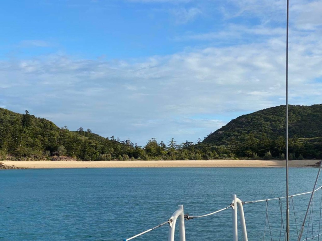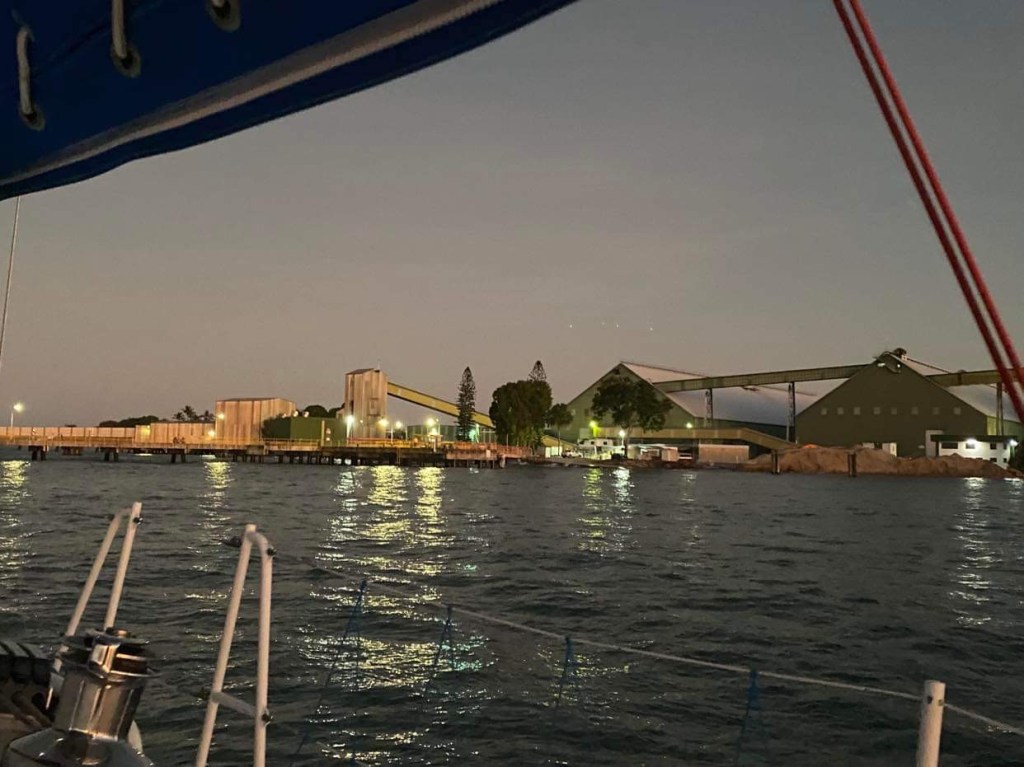 Bon, nous nous attendions à un mouillage cosy mais nous nous retrouvons près de l’usine de phosphate et à côté d’un énorme ponton et d’un cargo, well well, appelons les Border Force sur le 16, rendez-vous sur la plage, accueil hyper sympathique, après avoir tout de même vérifié nos passeports et les papiers du bateau, le gars de la biosécurité qui ressemble à un des Deschiens nous dit que tout a été fait à Mackay donc il n’a plus rien à faire, on voit grave le mec qui est payé à ne rien foutre et qui le tient pour un acquis social, un des douaniers nous donne un plan de l’île et nous explique où sont les supermarchés, la station de gasoil et le resto sympa du coin, nous faisons un tour de reconnaissance et rentrons au bateau manger un morceau puis nous coucher, fourbus.