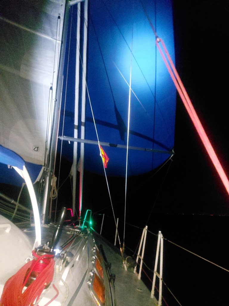 - Pour tout vous dire : en faisant des recherches pour vous expliquer tout ça, je me rends compte que notre drapeau Portugais est loin de faire les dimensions préconisées, qu’on les laisse jour et nuit et qu’on les met sur un hauban et pas sur une barre de flèche, faut que j’en parle au capitaine