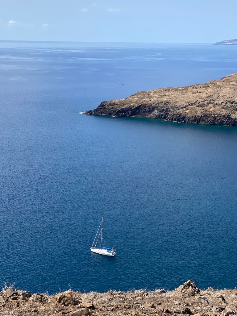 on lève l’ancre pour aller à Funchal, capitale de Madère, où je veux absolument fouiner du côté du jardin botanique et de plantes médicinales et avoir du réseau pour faire mes télé consultations, il y a de la houle, on y arrive juste à temps pour mes rendez-vous alors on jette l’ancre vite fait là où on tombe, ce sont les consultations les plus mouvementées de ma vie, le bateau roule à qui mieux-mieux et je me demande comment mes patients n’ont pas le mal de mer à me voir monter et descendre, en même temps je crois que ça ne se remarque pas parce que le bateau bouge en même temps que moi, c’est ce qu’on appelle faire corps avec le bateau, j’entends le capitaine qui passe et repasse au-dessus de ma tête, traficote avec l’ancre, la remonte, la mouille plus loin, mais ça ne change ni le tangage ni le roulis, il vient chercher sur la pointe des pieds pour ne pas me déranger je ne sais quoi sous un plancher